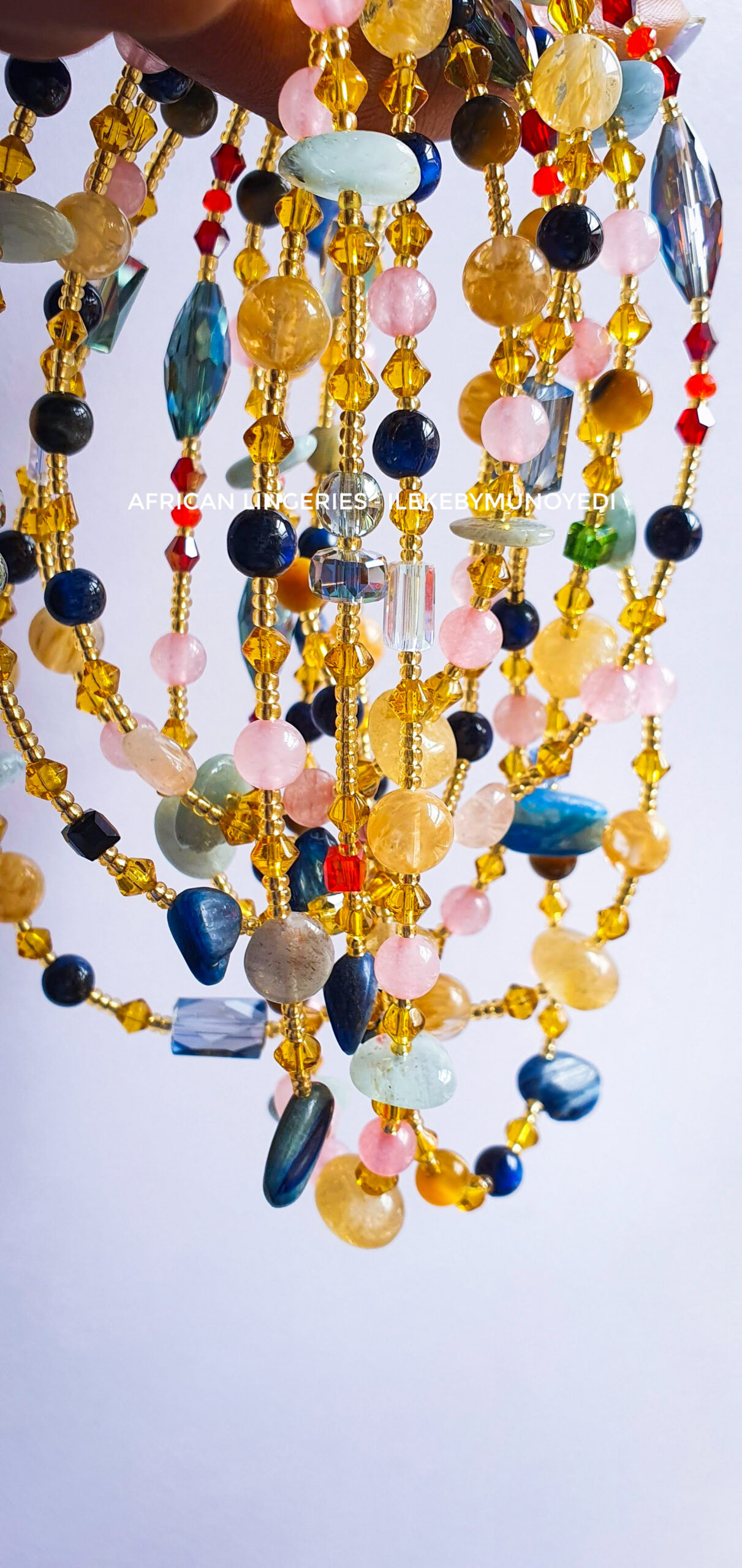 Our waist adornments are carefully measured and assembled to fit the body precisely, ensuring comfort, longevity, and a personal ritual. Designed for long-term wear, they are made with authentic gemstones and materials selected for both resilience and energetic integrity.