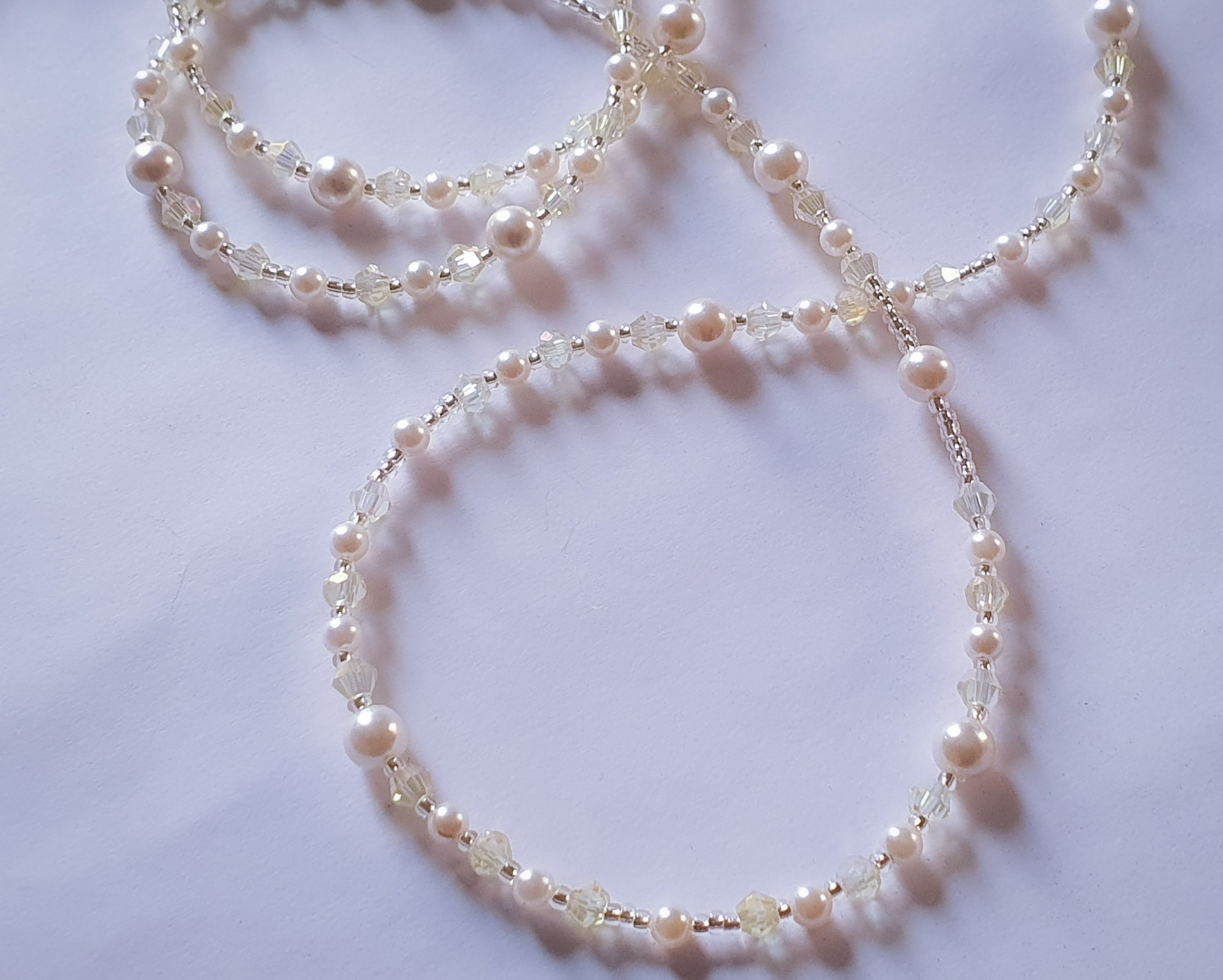 The transparency allows your natural skin tone to shine through, while the pearls provide a classic, sophisticated rhythm.