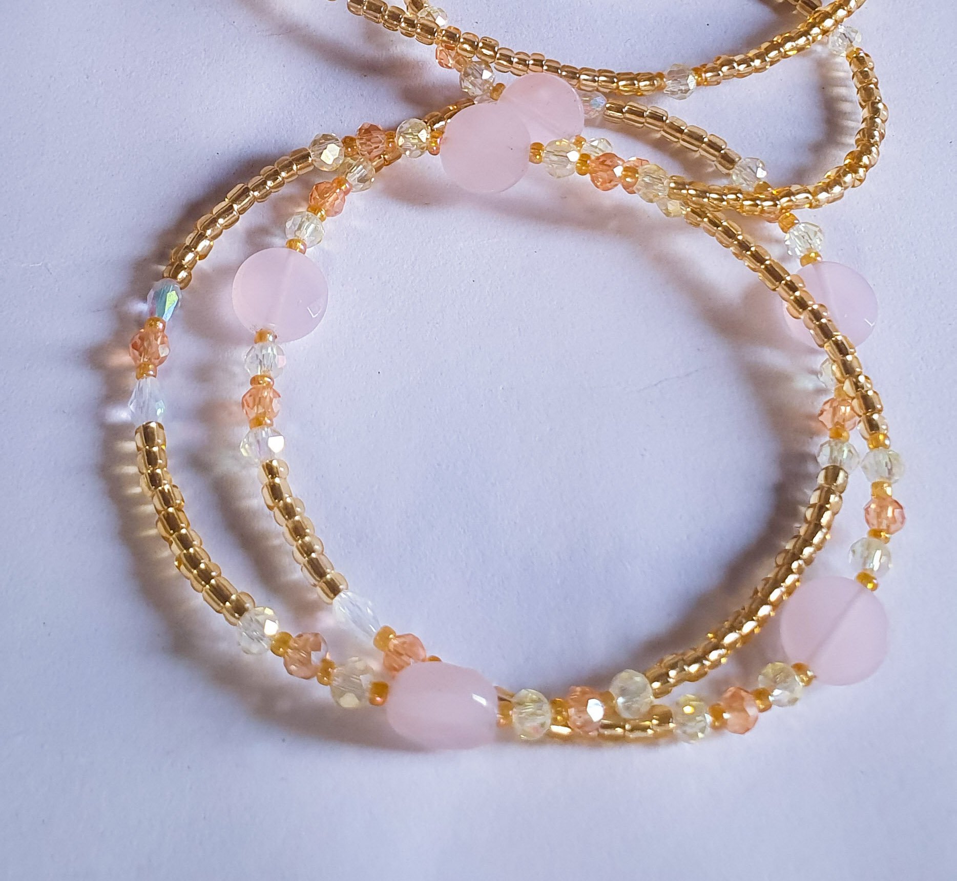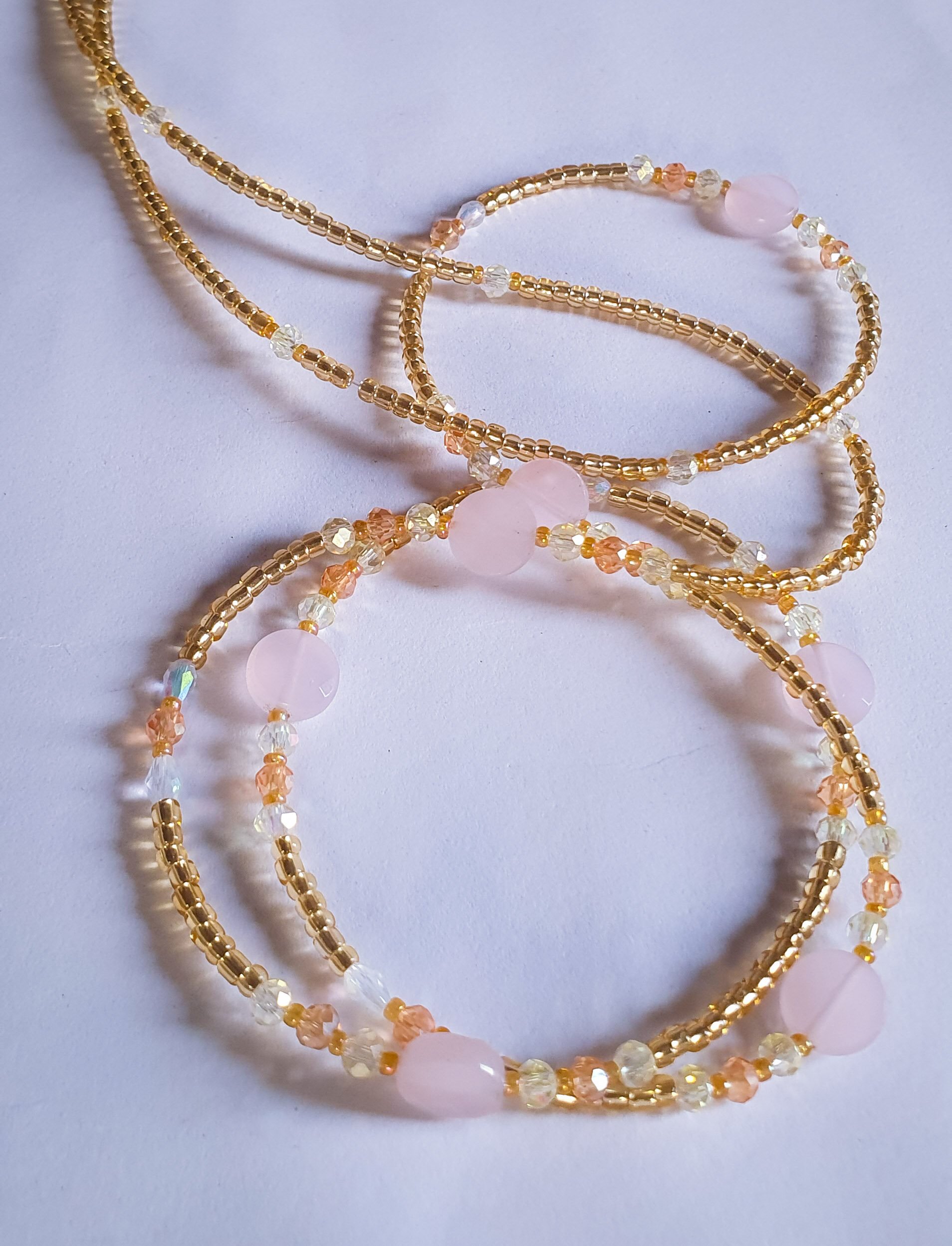 This strand features a luxurious blend of Gold and Light Gold beads, creating a multi-dimensional metallic shimmer that flatters every skin tone.