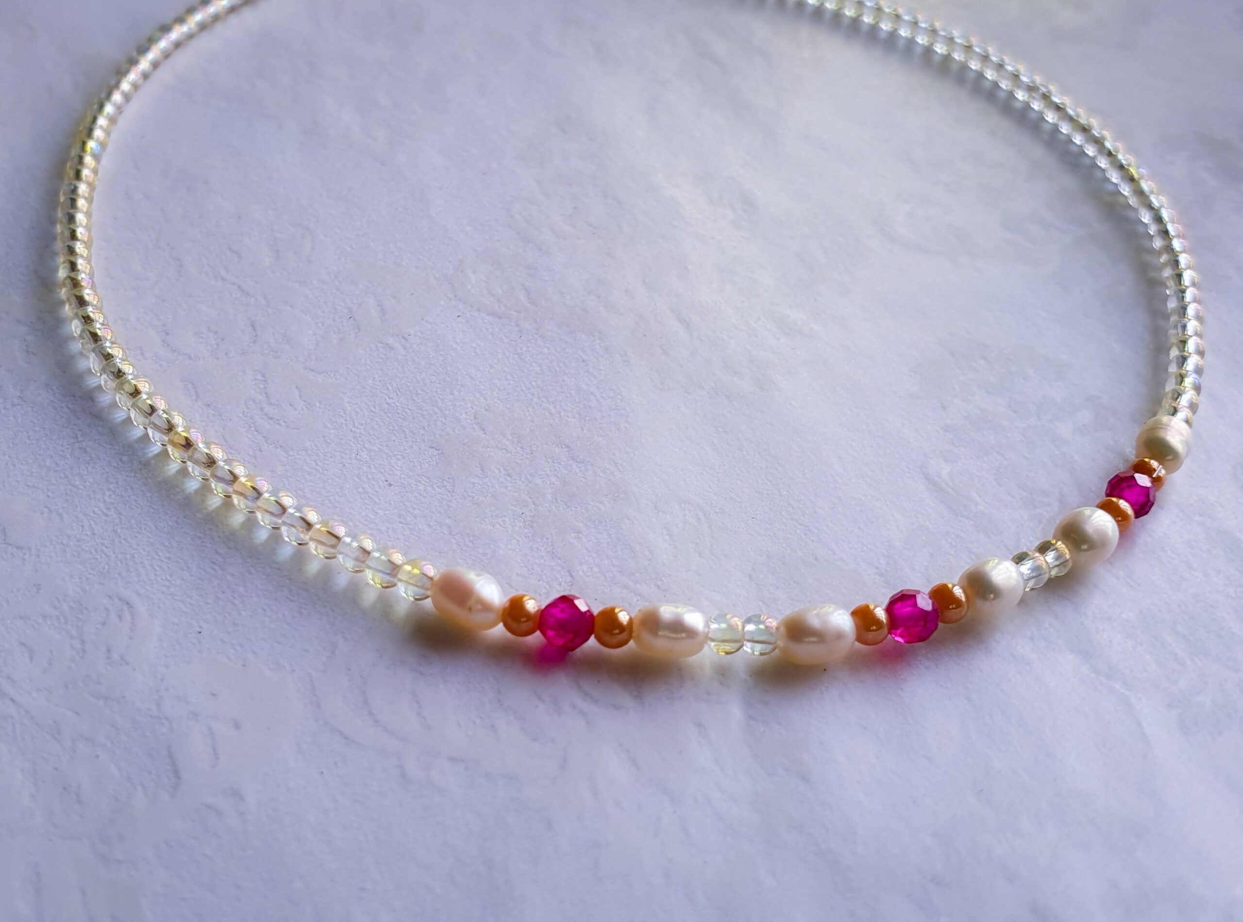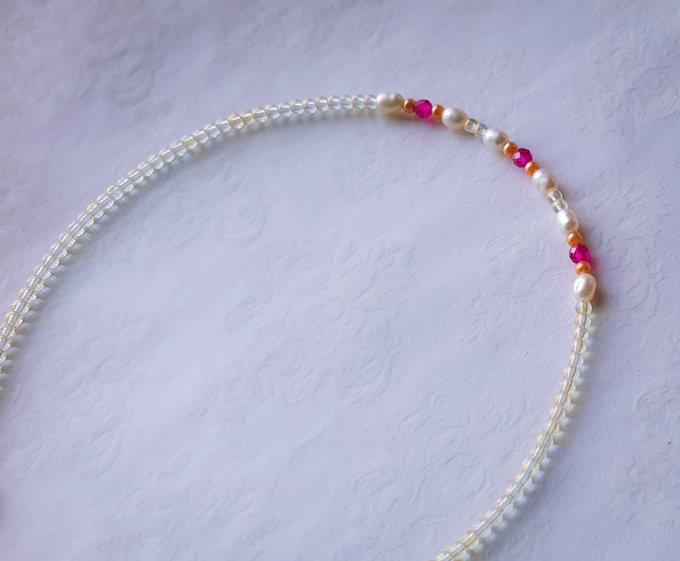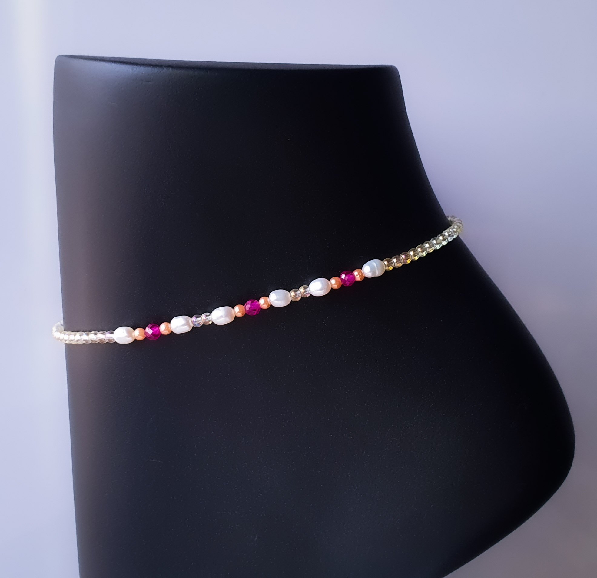 Classic freshwater pearls meet the passionate glow of rubies, with iridescent electroplated creme beads, for a soft finish at a price friendly to your wallet. Elegant guilt free glam.